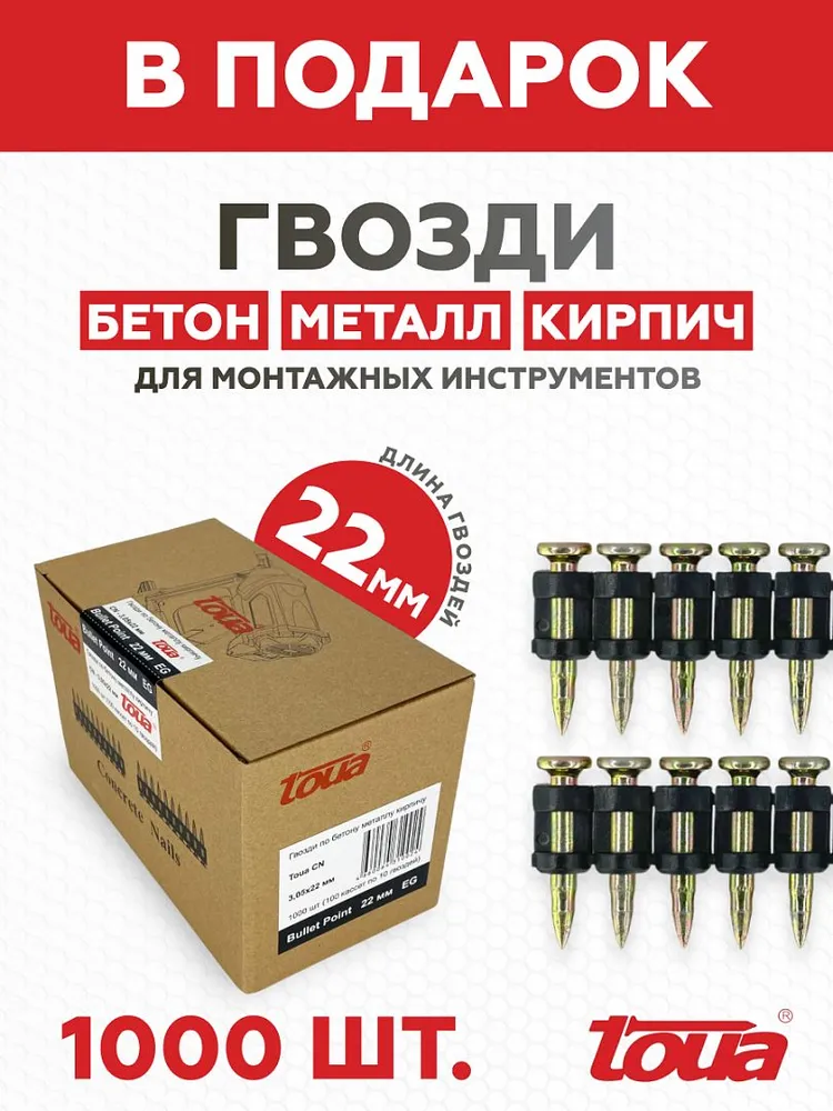 Аксессуары для Комплект из 10 баллонов Toua 165 Стандарт к монтажному пистолету + 1000 гвоздей 22мм в подарок